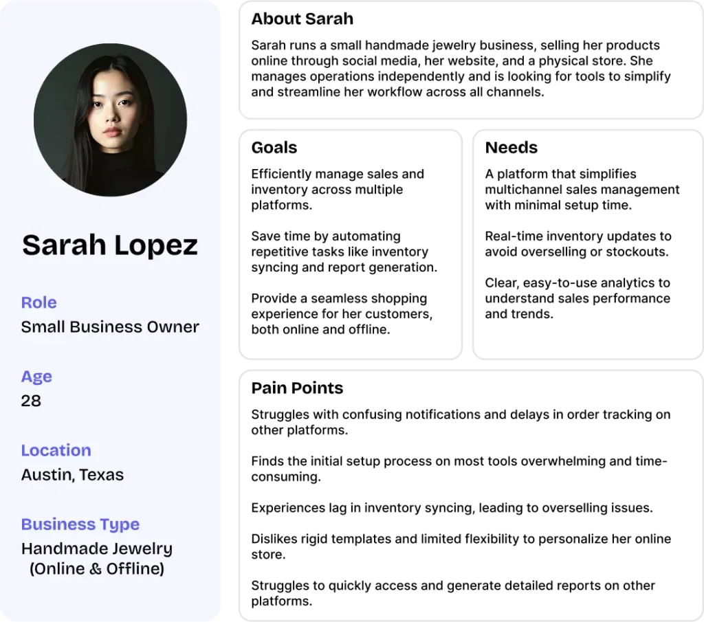 Their aimed to build a unified platform for businesses to manage inventory, orders, and customer interactions across all sales channels. Their goal was to offer a scalable solution that enables data-driven decisions and enhances the customer experience.