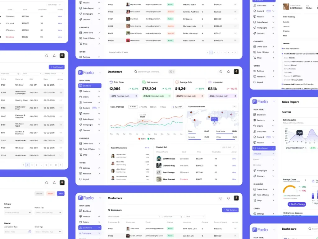 Faelio is a cloud-based multi-channel e-commerce platform designed to help small and medium-sized businesses manage sales across websites, mobile apps, social media, and physical stores. As a UX/UI designer, I focused on creating a user-friendly interface that streamlines operations and improves scalability.