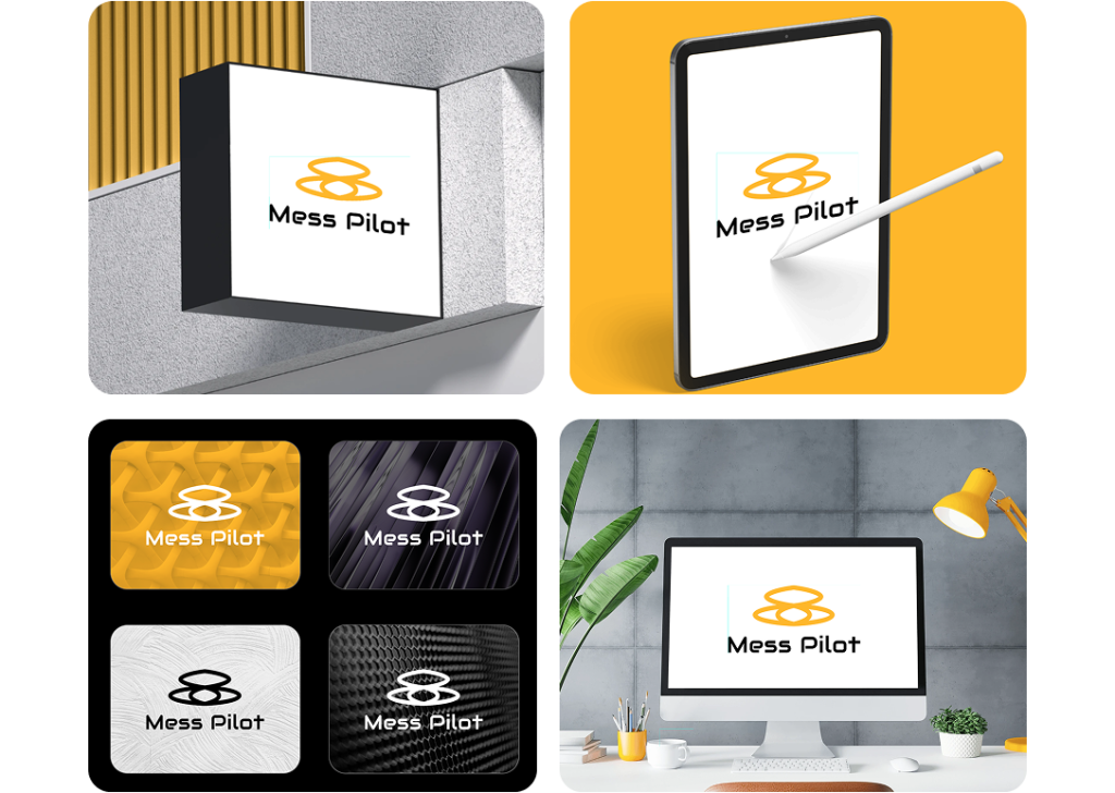 I designed the brand identity of Mess Pilot to reflect clarity, control, and forward direction. The bold yellow icon was created with a geometric balance to symbolize navigation and guidance acting as a “pilot” that helps users move through complexity with confidence. Its curved form adds adaptability and innovation while maintaining a sense of stability