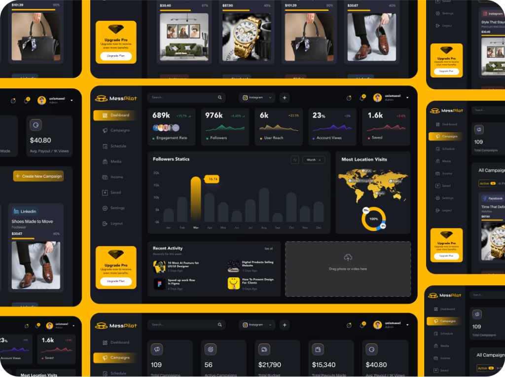 The dark background was part of my design decision to make the yellow pop with vibrancy while also projecting a sleek SaaS aesthetic. Overall, this identity communicates trust, innovation, and confidence, aligning perfectly with MessPilot’s purpose.